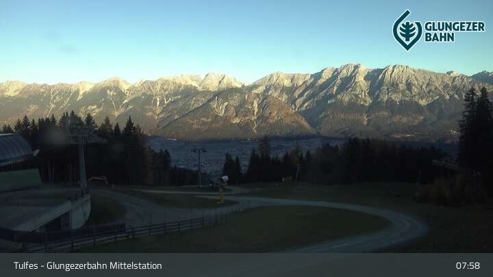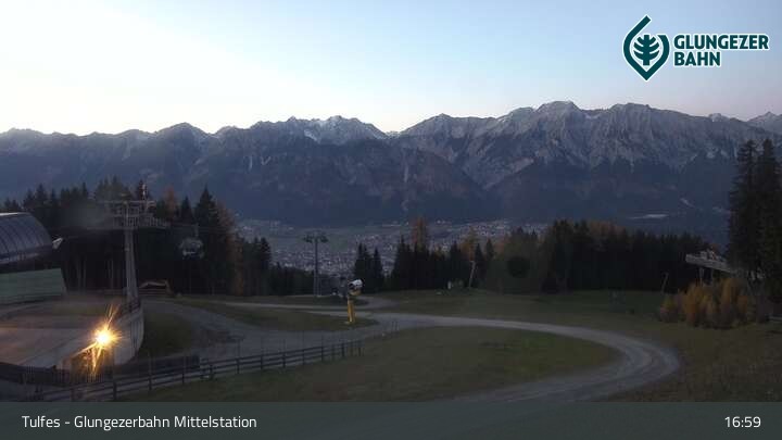 Webcam Tulfes: Blick von der Mittelstation am Glungezer, 1,553 m