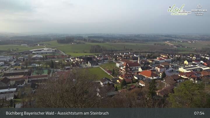 Webcam Büchlberg und Steinbruchsee vom Aussichtsturm, 527 m