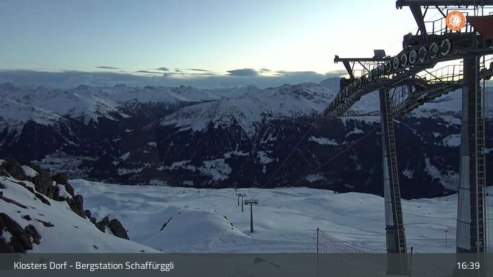Diese Webcam zeigt die Bergstation des Schaffürggli Lifts auf der Madrisa. Der 2.770 m hohe Berg in den schweizer Alpen bietet vielfältige Wander- und Erlebniswege.