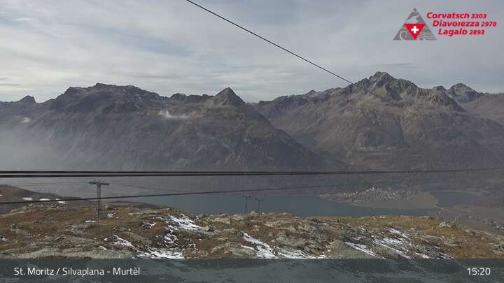 Blick über die Oberengadiner Seen in Graubünden von der Station Murtel aus.