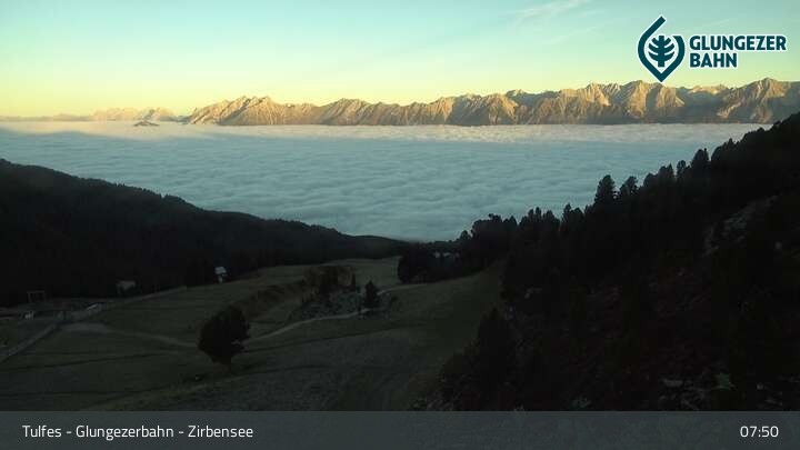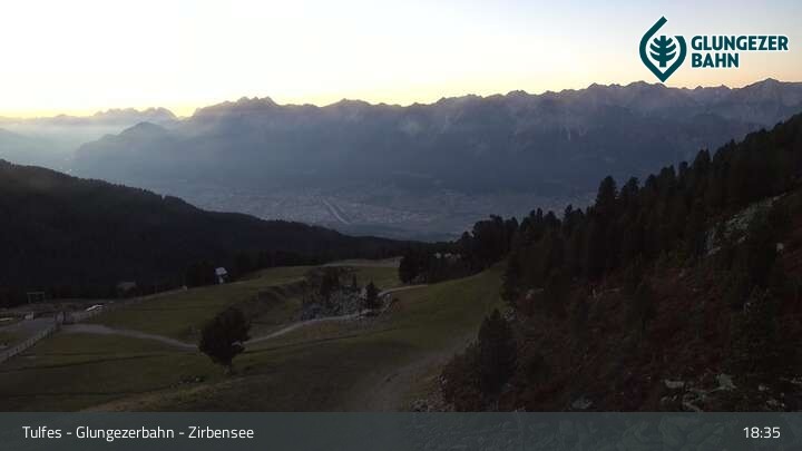 Die Webcam ermöglicht einen tollen Panoramablick auf die Landschaft am Glungezer. Das Bild wird unweit des Zirbensees aufgenommen.