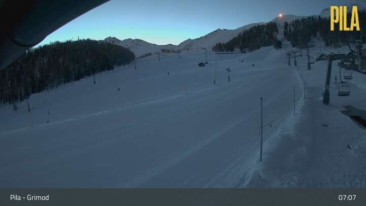 Die Webcam blickt auf den Sessellift Grimond in Pila.