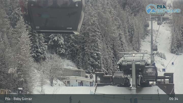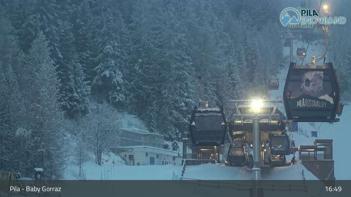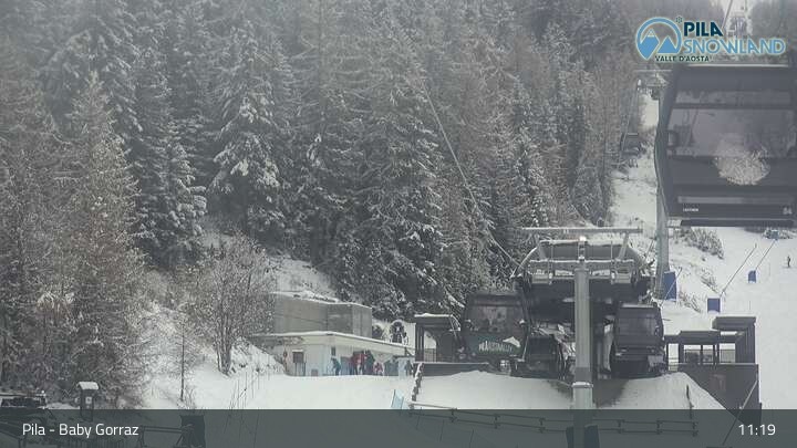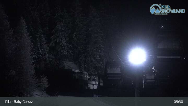 Die Webcam in Pila blickt vom Zauberteppich Baby Gorraz aus auf den Sessellift Gorraz und die umliegenden Berge.