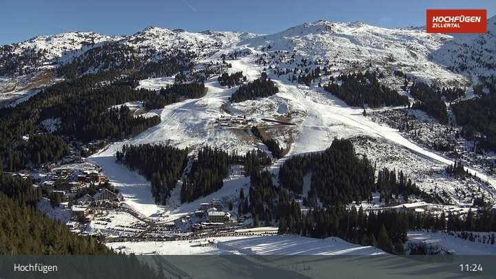 Die Webcam zeigt eine Panoramaufnahme in Hochfügen am Klausboden in der Wanderregion Zillertal.