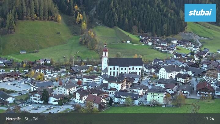 Die Webcam blickt auf den kleinen Ort Neustift im Stubaital.