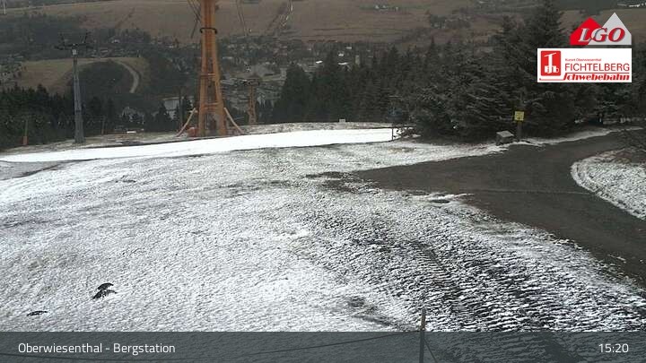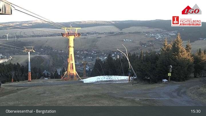 The webcam is located at the top station at the ski resort of Oberwiesenthal Fichtelberg. From there, it looks down upon Oberwiesenthal.