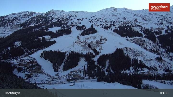 Die Webcam zeigt eine Panoramaufnahme in Hochfügen am Klausboden in der Wanderregion Zillertal.