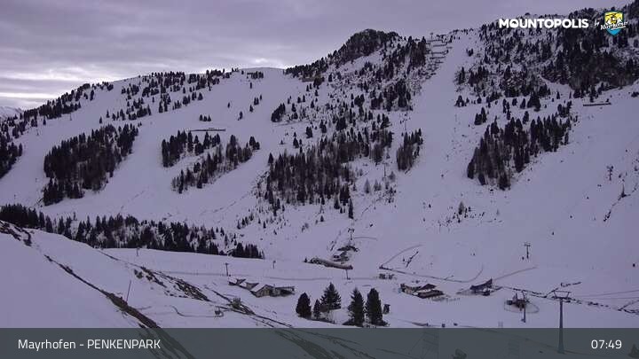 Hier blickst du auf den Vans Penken Park sowie den Sun-Jet Lift im Skigebiet Mayrhofen.