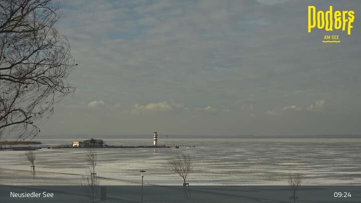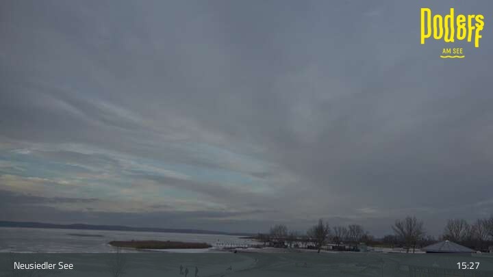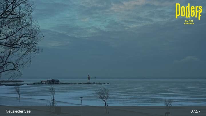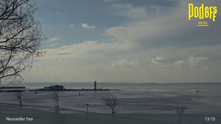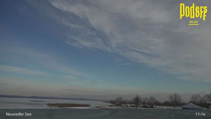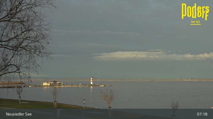 Vom Ort Podersdorf aus blickst du auf den Neusiedler See im österreichischen Bundesland Burgenland.