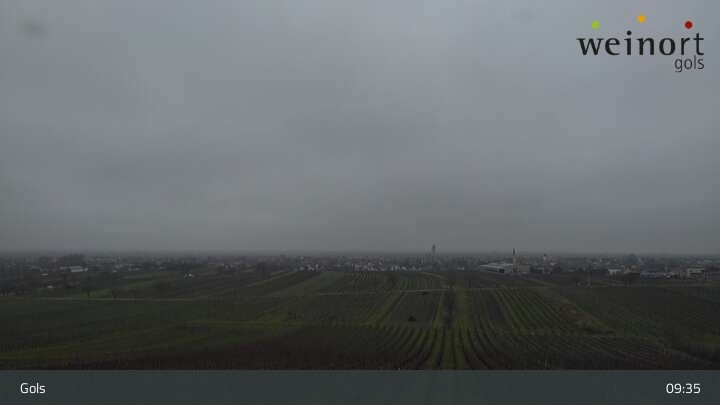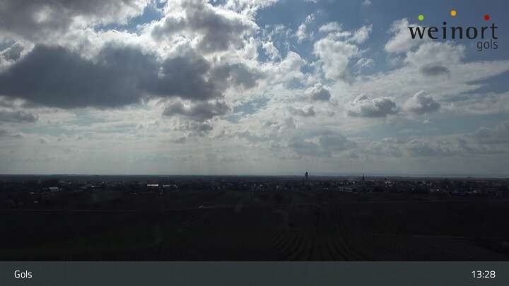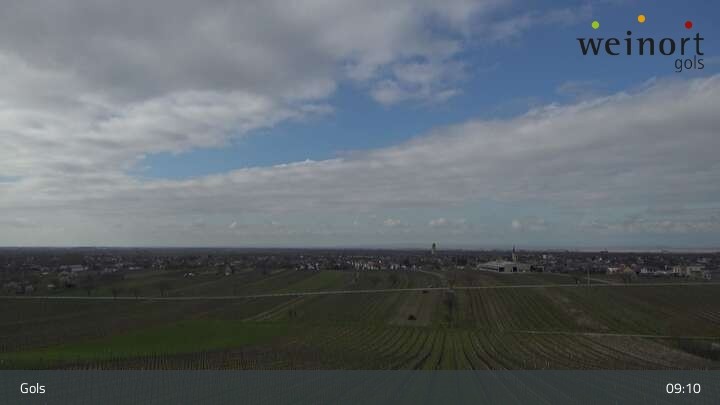 Über die Weinberge hinweg blickt die Webcam auf den Ort Gols im Burgenland.