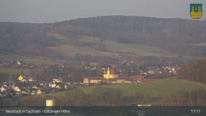 Hier siehst du Neustadt in Sachsen, eine Kleinstadt im Elbsandsteingebirge. Die Webcam befindet sich südlich der Stadt an der Götzinger Höhe.