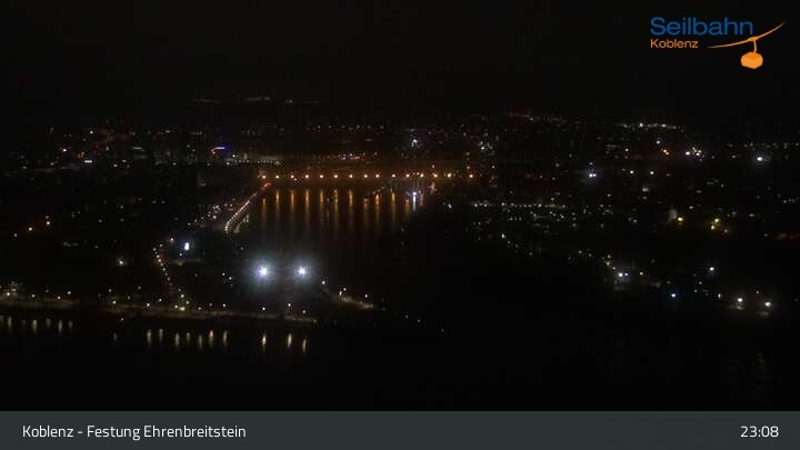 Webcam Koblenz: Blick von der Festung auf Seilbahn und Deutsches Eck, 160 m