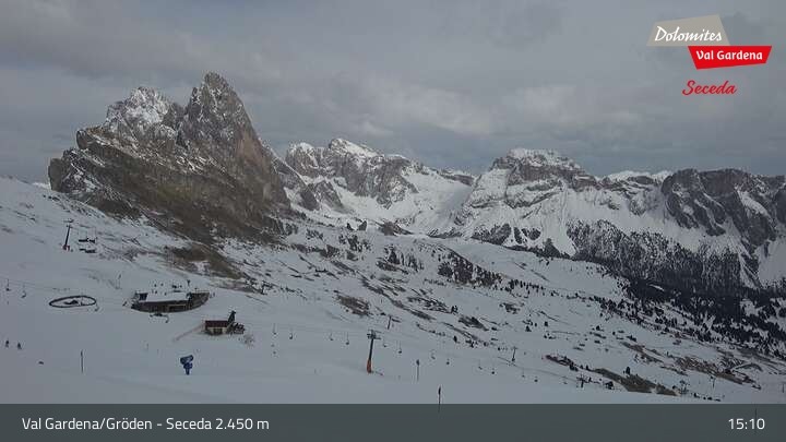 Von der Seceda eröffnet sich der Blick nach Süden zur Sellagruppe und dem Langkofel