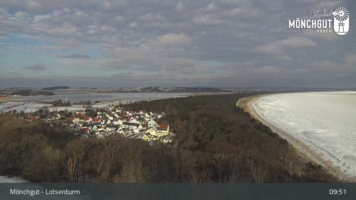 Die Webcam ist am Lotsenturm bei Thiessow positioniert und zeigt den Blick auf die Halbinsel Mönchgut, die zu Rügen gehört und an der Ostsee liegt.