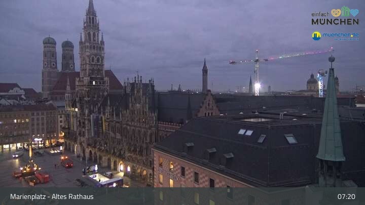Die Webcam blickt vom Alten Rathaus auf den Marienplatz, der zentrale Platz der Münchener Innenstadt.