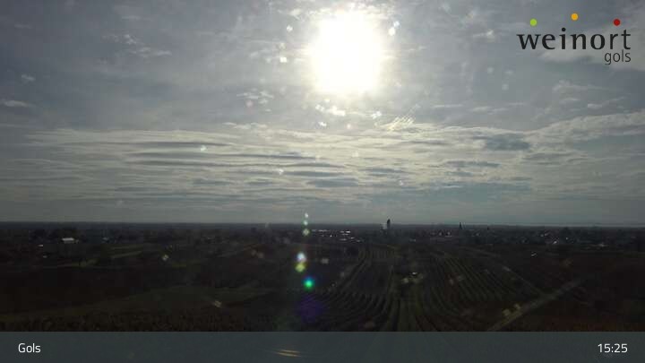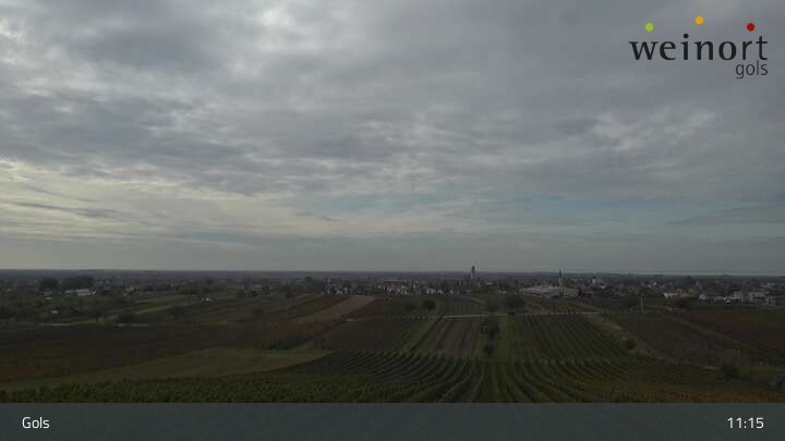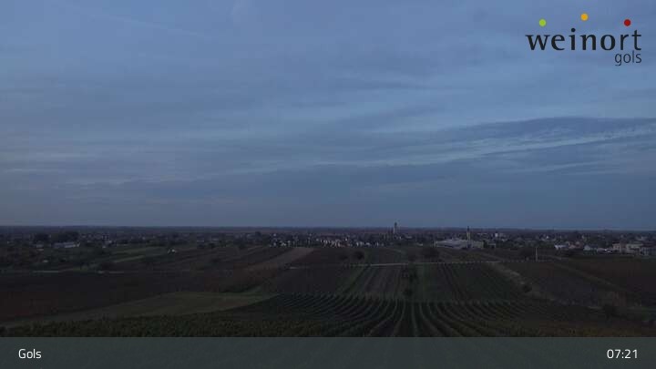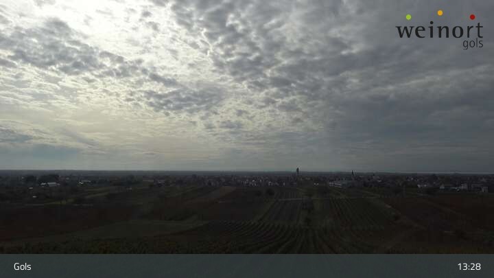 Über die Weinberge hinweg blickt die Webcam auf den Ort Gols im Burgenland.