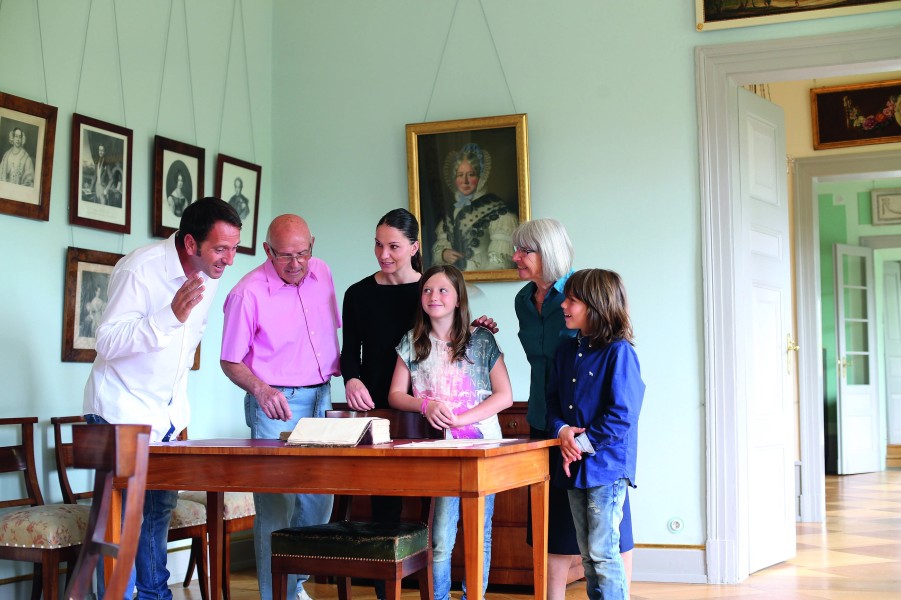 Im zweiten Obergeschoss des Südflügels, der sogenannten Beletage, sind die herrschaftlichen Wohnräume als Schlossmuseum eingerichtet. Die Zimmer sind den beiden prominentesten Bewohnerinnen gewidmet: Herzogin Franziska von Hohenheim, die das Schloss nach dem Tod Herzog Carl Eugens im Empirestil umgestalten ließ, und Herzogin Henriette von Württemberg, die hier über 40 Jahre als Witwe lebte und sich engagiert für das Gemeinwohl der Stadt einsetzte. Kostbare Möbel, Gemälde und detailreich eingerichtete Räume vermitteln ein lebendiges Bild adeliger Wohnverhältnisse. Unterhalb des Terrassengartens verbirgt sich die 75 Meter lange Kasemattenanlage aus dem 16. Jahrhundert, die bei Sonderführungen besichtigt werden kann. Auch der über 450 Jahre alte Dachstuhl aus Schwarzwälder Nadelholz, ein Meisterwerk der Zimmermannskunst, zählt zu den verborgenen Schätzen des Schlosses.