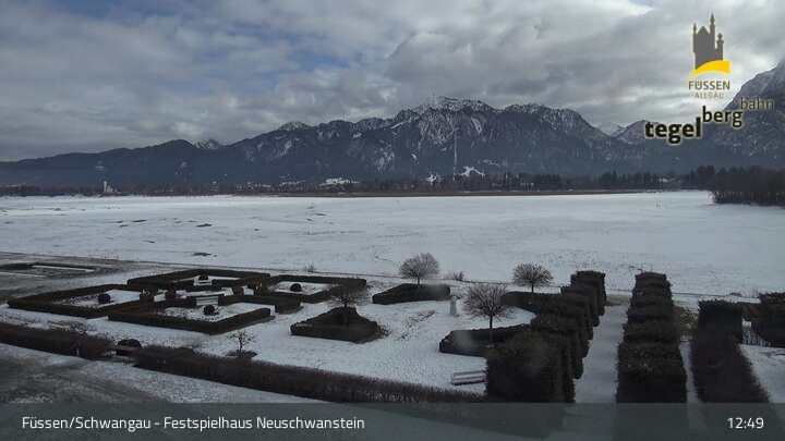 Die Webcam blickt auf den Garten von Ludwigs Festspielhaus in Füssen am Forggensee.