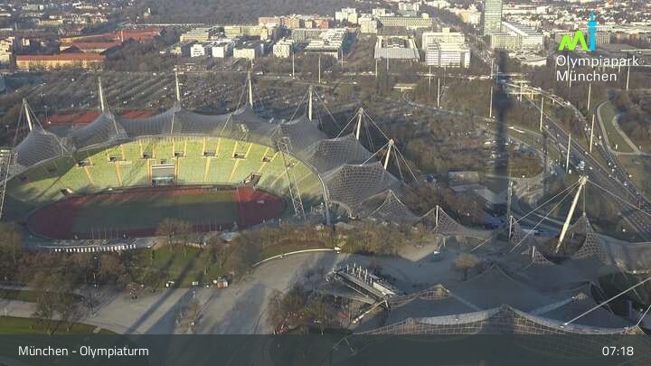 Im nordwestlichen Teil der Münchner Innenstadt befindet sich am Olympiaturm diese Webcam mit dem direkten Blick auf den Olympiapark. Zu sehen sind unter anderem das Olympiastadion und die Olympiahalle, beliebte Orte für Veranstaltungen und Konzerte. Wichtiger Hinweis: Bei großen Veranstaltungen kann es sein, dass die Webcam vorübergehend deaktiviert wird.