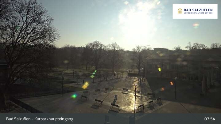 Die Webcam zeigt den Kurpark im nordrhein-westfälischen Heilbad Bad Salzuflen. Sie blickt direkt auf den Haupteingang zum Park.