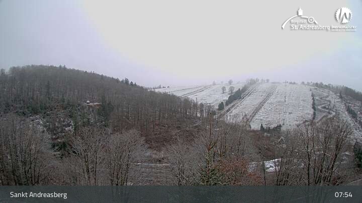 Die Kamera blickt vom Harz-BnB Werkmeister in Sankt Andreasberg nach Süden auf die Alberti-Lifte am Matthias-Schmidt-Berg. Im Winter sind die Lifte für Skifahrer in Betrieb, im Sommer wartet hier eine Sommerrodelbahn sowie ein Mountainbike- und Downhill-Erlebnispark.