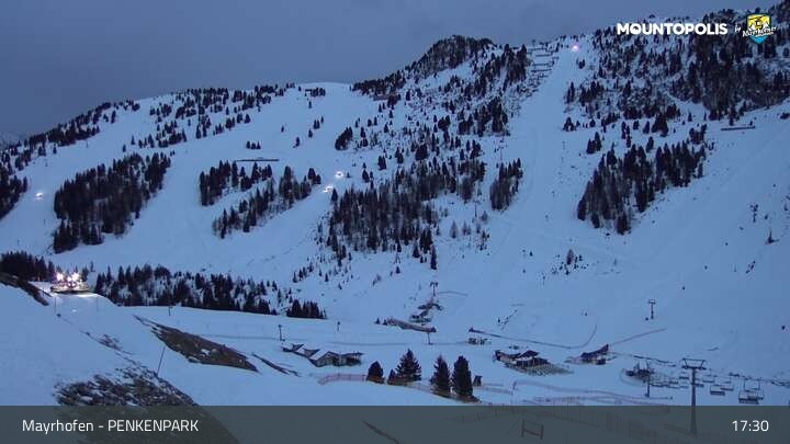 Hier blickst du auf den Vans Penken Park sowie den Sun-Jet Lift im Skigebiet Mayrhofen.