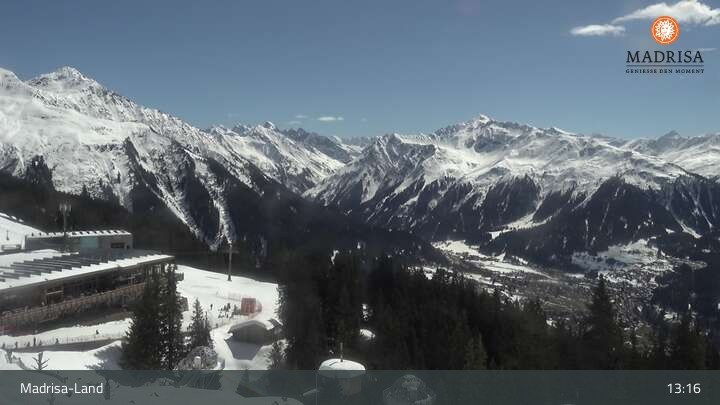 Die Webcam zeigt die Umgebung auf der Madrisa, einem rund 2770 m hohen Berg in den Schweizer Alpen. Hier befinden sich auch viele abwechslungsreiche Wander- und Erlebniswege.