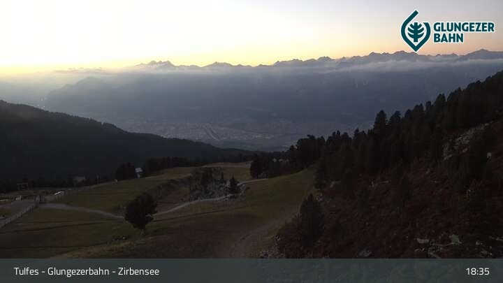 Die Webcam ermöglicht einen tollen Panoramablick auf die Landschaft am Glungezer. Das Bild wird unweit des Zirbensees aufgenommen.