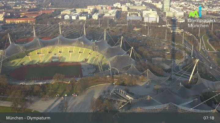 Im nordwestlichen Teil der Münchner Innenstadt befindet sich am Olympiaturm diese Webcam mit dem direkten Blick auf den Olympiapark. Zu sehen sind unter anderem das Olympiastadion und die Olympiahalle, beliebte Orte für Veranstaltungen und Konzerte. Wichtiger Hinweis: Bei großen Veranstaltungen kann es sein, dass die Webcam vorübergehend deaktiviert wird.