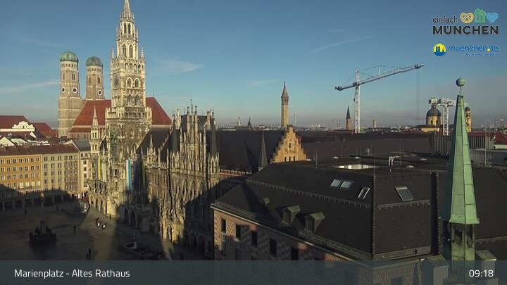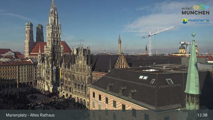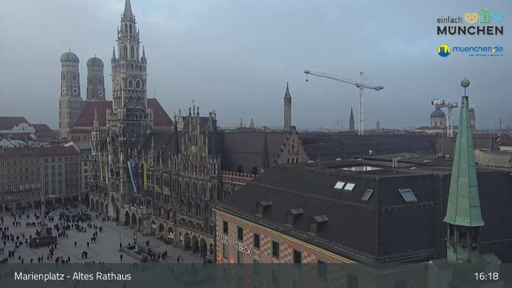 Die Webcam blickt vom Alten Rathaus auf den Marienplatz, der zentrale Platz der Münchener Innenstadt.