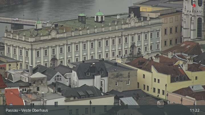 Die Webcam zeigt einen tollen Panoramablick von der Veste Oberhaus auf die Donau und die Altstadt von Passau. Neber der herrschaftlichen Burgfassade sieht man sehr gut die Landzunge zwischen Donau und Inn, auf der die Altstadt mit ihren denkmalgeschützten Häusern liegt. Gut zu erkennen sind unter anderem die Ortspitze am Zusammenfluss der drei Flüsse, das an der Donau liegende Rathaus, der weiße Dom St. Stephan und das erhöhte Kloster Mariahilf in der Innstadt.