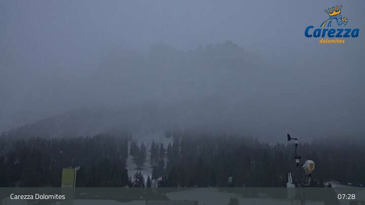 Hier siehst du die Talstation des Sessellifts Pra di Tori sowie die Berge von Carezza