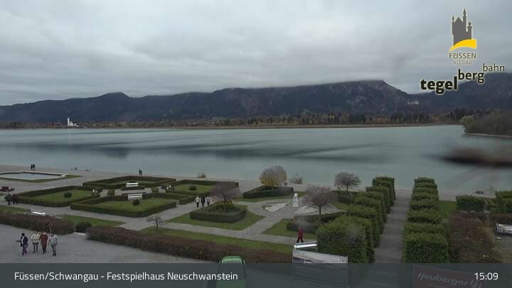 Die Webcam blickt auf den Garten von Ludwigs Festspielhaus in Füssen am Forggensee.