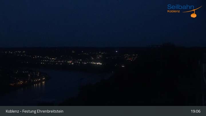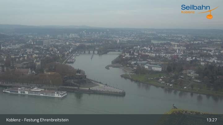 Webcam Koblenz: Blick von der Festung auf Seilbahn und Deutsches Eck, 160 m