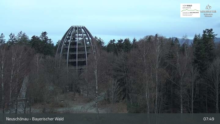 Die Kamera befindet sich in Neuschönau auf dem Dach des Besucherzentrums Hans-Eisenmann-Haus im Nationalparkzentrum Lusen im Bayerischen Wald. Zu sehen ist auch der über 40 Meter hohe Turm des Baumwipfelpfads.