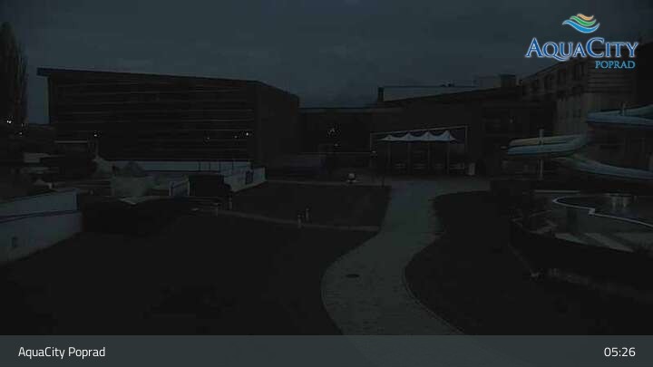 Sicht auf den Außenbereich der AquaCity in der slowakischen Stadt Poprad am Fuße der Tatra.