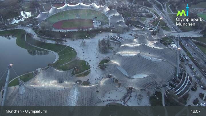 Im nordwestlichen Teil der Münchner Innenstadt befindet sich am Olympiaturm diese Webcam mit dem direkten Blick auf den Olympiapark. Zu sehen sind unter anderem das Olympiastadion und die Olympiahalle, beliebte Orte für Veranstaltungen und Konzerte. Wichtiger Hinweis: Bei großen Veranstaltungen kann es sein, dass die Webcam vorübergehend deaktiviert wird.