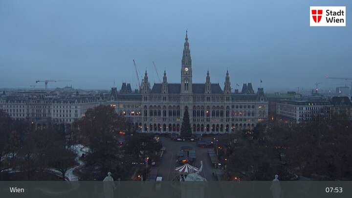 Die Webcam bietet dir einen Rundumblick über den ersten Wiener Bezirk. Du siehst das Burgtheater und das Rathaus.