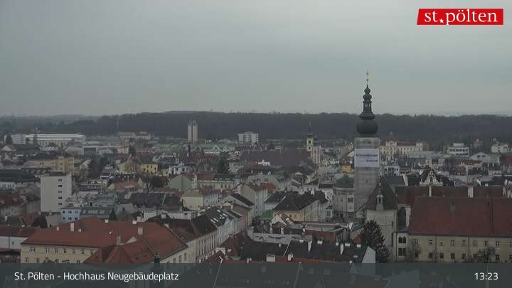 Die Webcam befindet sich in St. Pölten auf dem Dach des Hochhauses am Neugebäudeplatz und blickt über die Landeshauptstadt von Niederösterreich. Zu sehen ist unter anderem das Gebäude der Landesregierung und der Dom.