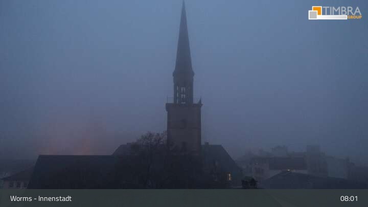 Die Webcam befindet sich in der Wormser Innenstadt. Der Blick wandert von der Magnuskirche, hinter welcher die Türme des Wormser Doms St. Peter zu sehen ist über die Dächer der Stadt bis zum Andreasstift und der Stadtmauer.