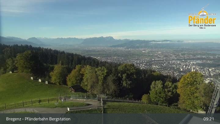 Die Video-Webcam zeigt einen traumhaften Panoramablick von der Bergstation am Pfänder hinunter auf den Bodensee und die Stadt Bregenz.