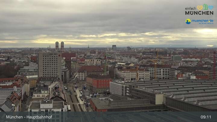 Diese Webcam zeigt dir einen Livestream über die Dächer von München, der Landeshauptstadt von Bayern und eine der größten Städte Deutschlands. Zu sehen ist das Areal des Hauptbahnhofes.