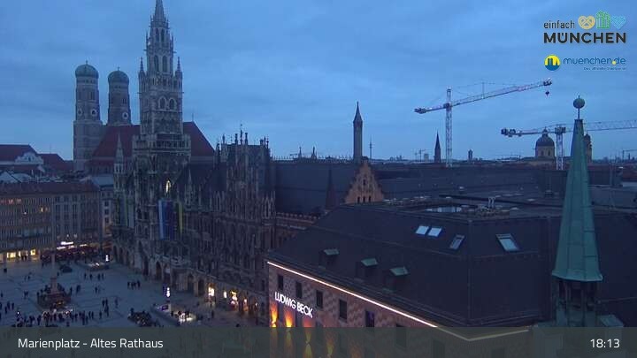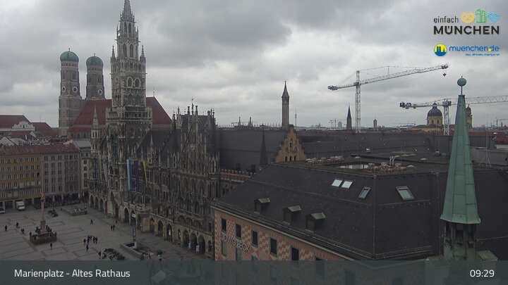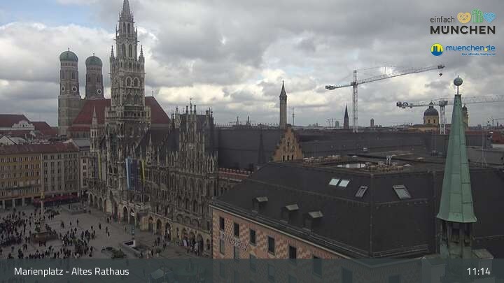 Die Webcam blickt vom Alten Rathaus auf den Marienplatz, der zentrale Platz der Münchener Innenstadt.