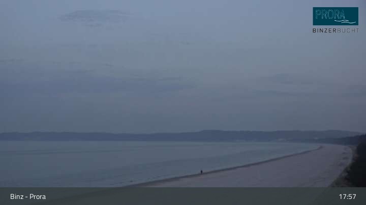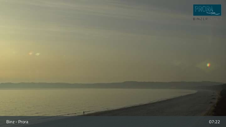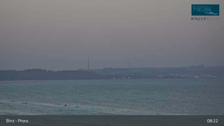 Die Kamera befindet sich auf der Insel Rügen am Strand von Prora und blickt über die Binzer Bucht.
