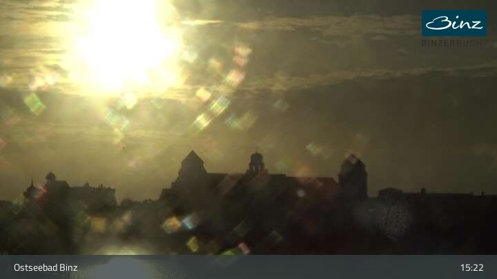Zu sehen ist die Strandpromenade des Ostseebades Binz. Die Webcam ist auf der Seebrücke Binz positioniert und zeigt unter anderem Kurhaus, Strandpromenade und den Fischerstrand.