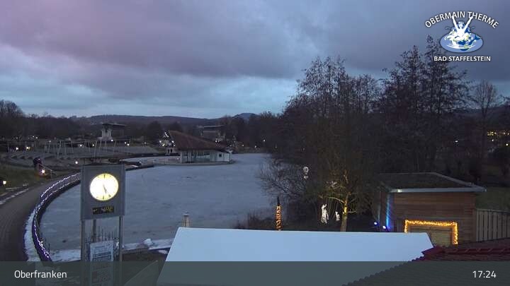 Blick auf die Seebühne im Bad Staffelsteiner Kurpark in Oberfranken. In den Sommermonaten wird hier ein Mix aus Konzerten und Veranstaltungen geboten.