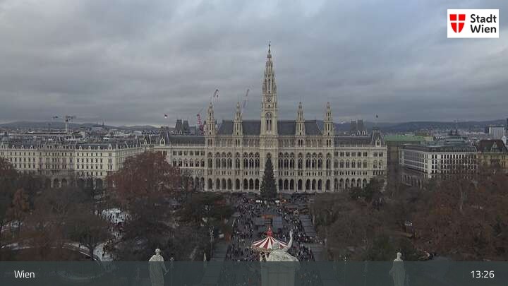 Die Webcam bietet dir einen Rundumblick über den ersten Wiener Bezirk. Du siehst das Burgtheater und das Rathaus.