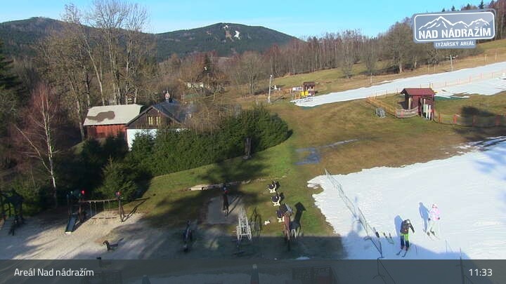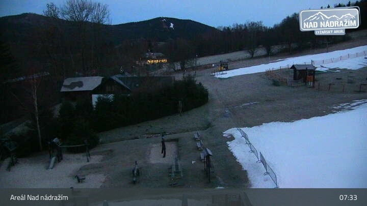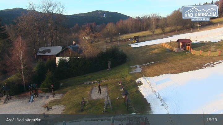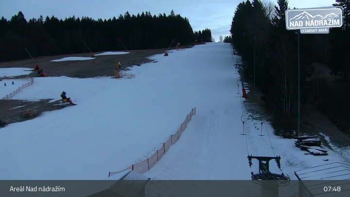 Die Webcam zeigt die Skilifte im Areal Nad nádražím bei Železná Ruda nahe der deutschen Grenze.