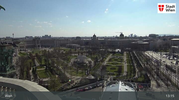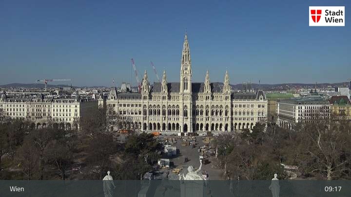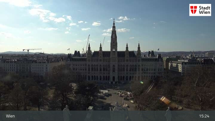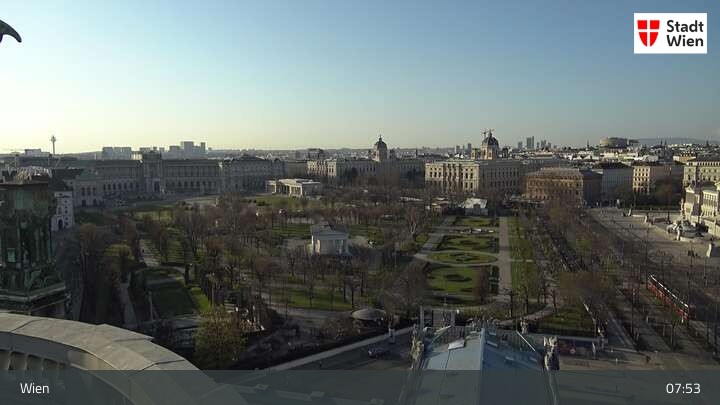 Die Webcam bietet dir einen Rundumblick über den ersten Wiener Bezirk. Du siehst das Burgtheater und das Rathaus.