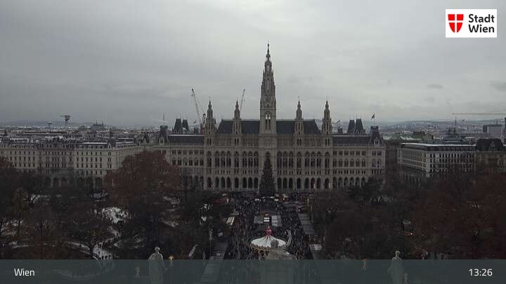 Die Webcam bietet dir einen Rundumblick über den ersten Wiener Bezirk. Du siehst das Burgtheater und das Rathaus.